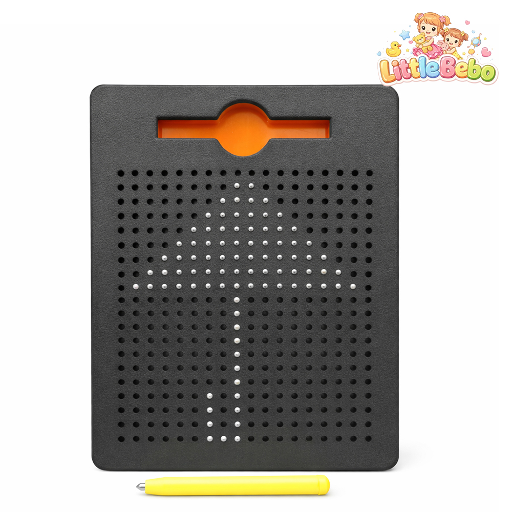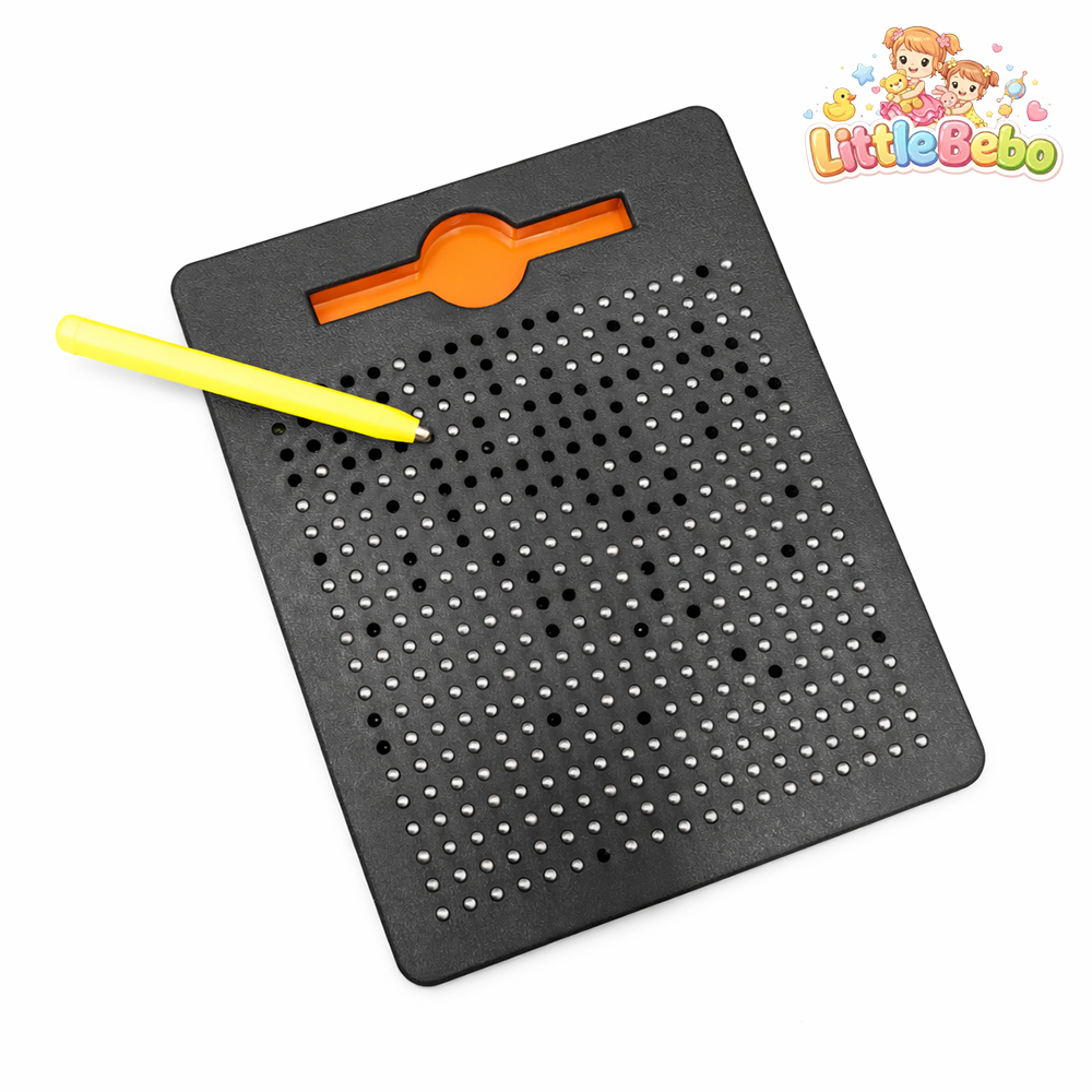 Watch your child’s imagination come alive — one magnetic dot at a time. The Magnetic Drawing Pad with Stylus Combo is more than just a toy… it’s a creative learning companion designed to turn playtime into brain-building time. Children can draw pictures, write alphabets, practice numbers or create fun patterns by simply using the magnetic stylus to lift the beads to the surface. The sensory “click” feedback keeps them engaged while strengthening writing grip and fine motor control — essential for preschool development. Parents love it because it’s completely mess-free. No crayons on walls, no paper waste, no ink marks. Just pure reusable creativity. To erase, kids simply press the beads down and start again — making it an eco-friendly learning tool. Safety remains the top priority. Crafted from high-quality non-toxic plastic, the board features smooth edges and a sealed bead design so nothing comes loose during play. Durable construction ensures long-lasting use even with daily handling. Whether at home, during travel or at restaurants, this lightweight magnetic pad keeps kids happily engaged while supporting cognitive growth. Gift your child a toy that entertains, educates and inspires — all at once.
