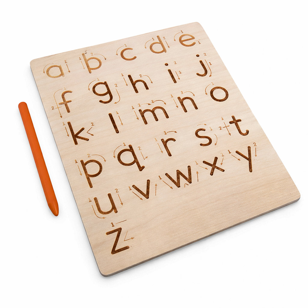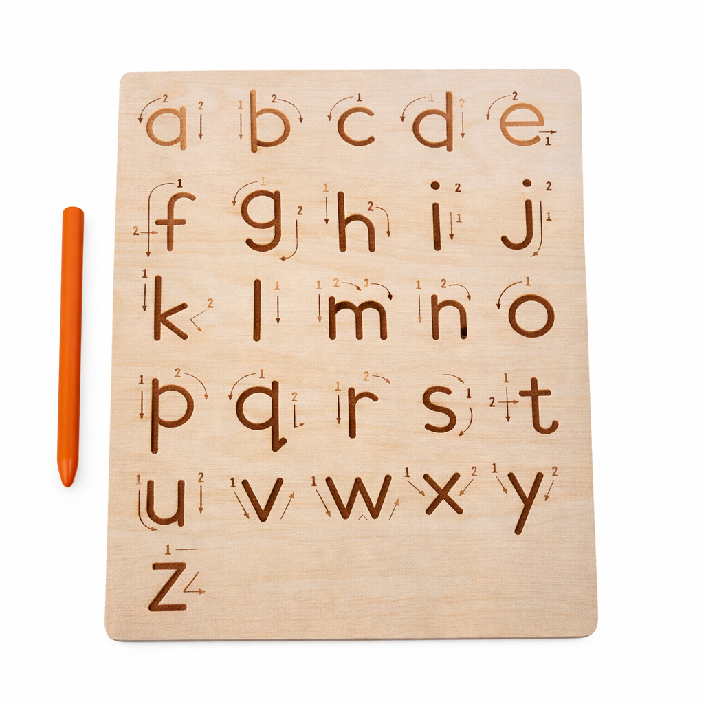 This wooden tracing board helps toddlers master numbers 0–20, geometric shapes, patterns, and early handwriting skills. The engraved grooves guide each stroke, making letter formation, counting, sequencing, and muscle memory development simple and enjoyable.